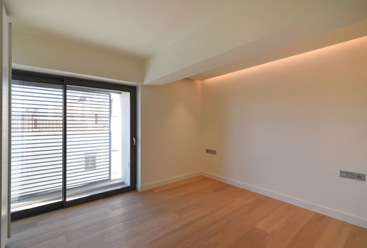 First floor accommodates living area, dining area, an open plan kitchen and a bathroom. It has a very nice double storey glazed volume over the living area which makes it very bright and airy.